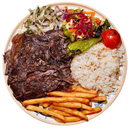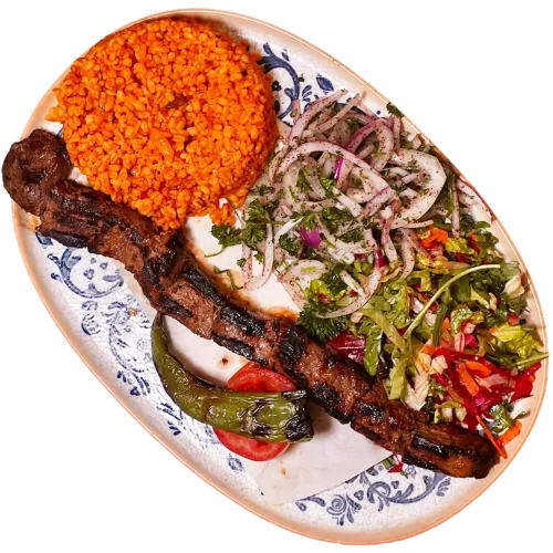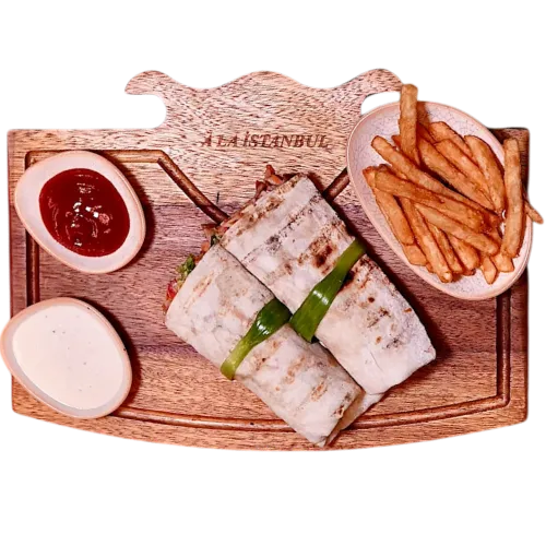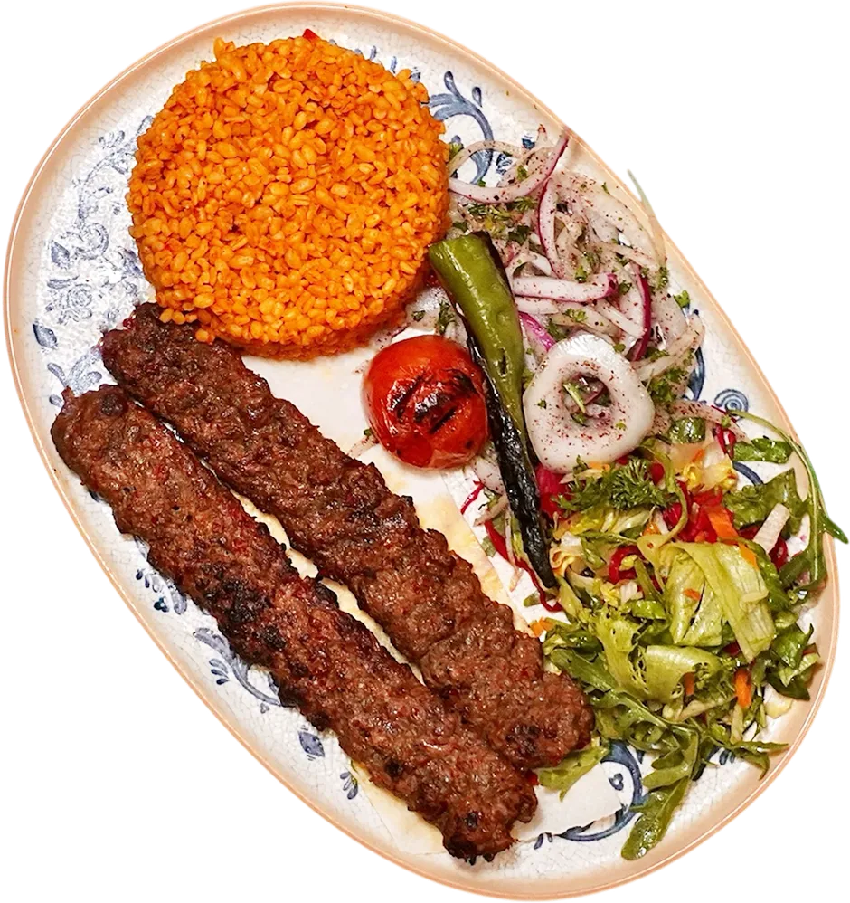 Beef Adana kebab, lettuce, pickles and garlic sauce, rolled in freshly baked lavash.