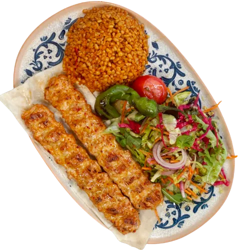 Chicken Adana kebab, lettuce, pickles and garlic sauce, rolled in freshly baked lavash.