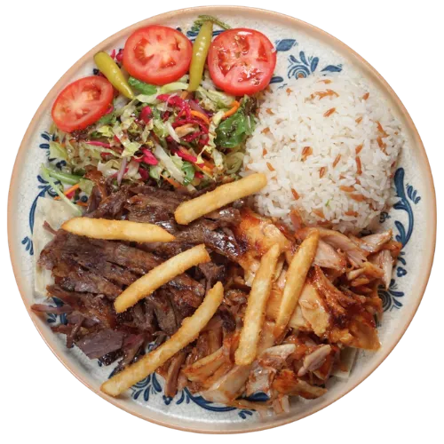 Beef döner, lettuce, pickles and garlic sauce, rolled in freshly baked lavash.